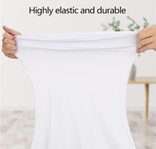 Wysokiej jakości materiał: elastan poliestrowy, wykonany z wysokogatunkowej tkaniny o dużej elastyczności, która lepiej otula krzesło. Łatwa w czyszczeniu i trwała jakość.