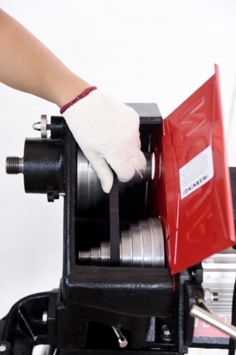 Oszczędność czasu – łatwy dostęp do wrzeciennika i szybka zmiana pozycji paska pozwalają na sprawne dostosowanie maszyny do różnych prac.
