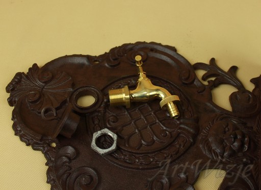 Zlew zdobiona ornamentem roślinnym oraz pyskiem lwa.