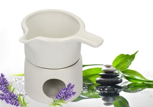 Przedmiotem tej aukcji jest ceramiczny komplet do podgrzewania masła i olejku do masażu.