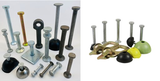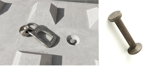 WYKONANIE: Kotwy są kute (pręt stalowy) ze stali St 52-3 a przeznaczone są głównie do transportu wszystkich typów prefabrykatów, np. dźwigarów, słupów, kręgów, belek itp.. Jakiekolwiek zmiany (zwłaszcza spawanie) kotew z głowicą kulową są niedozwolone. Nośność oferowanych kotew transportowych do podnoszenia waha się od 1,3 T do 32 T w zależności od potrzeb [patrz inne nasze oferty na allegro].