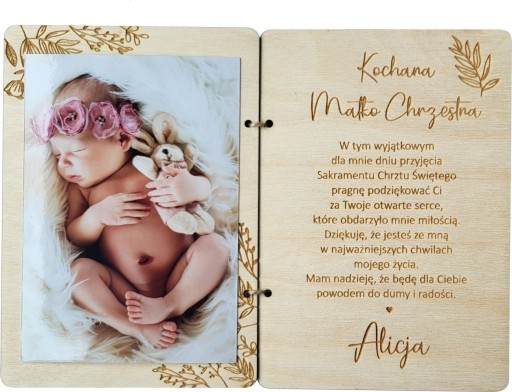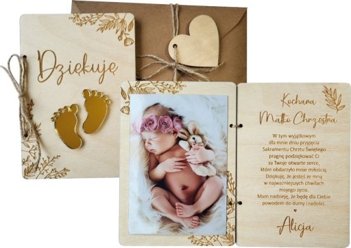 DREWNIANA KARTKA Z PODZIĘKOWANIEM DLA RODZICÓW CHRZESTNYCH