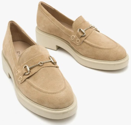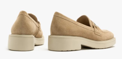 Piaskowe mokasyny ze srebrną ozdobą z linii RYŁKO RELAX.