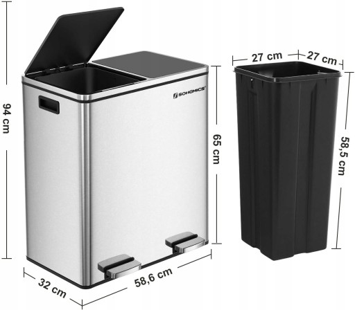 Idealny segregator odpadów ze stali nierdzewnej. Wewnętrzne wiadra wykonane są z tworzywa sztucznego. Odporny na zarysowania i rdzę pojemnik ułatwi życie Tobie i Twojej rodzinie. Sprawdzi się w każdych domowych i biurowych warunkach.