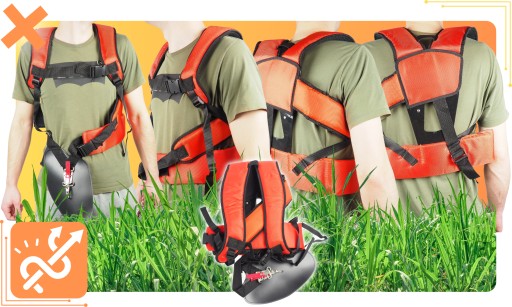 Dodatkowe elementy, takie jak zatrzask do awaryjnego odpięcia kosy, umożliwiają szybką reakcję w przypadku nagłej potrzeby odłączenia urządzenia. Natomiast naramienniki wypełnione gąbką zapewniają nie tylko wygodę podczas noszenia, ale również rozkładają równomiernie ciężar, co minimalizuje obciążenie i zapewnia stabilność podczas każdej pracy ogrodniczej, gwarantując bezpieczną i komfortową pracę przez długie godziny.