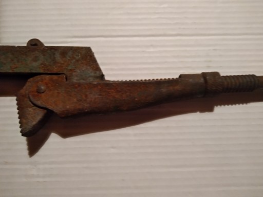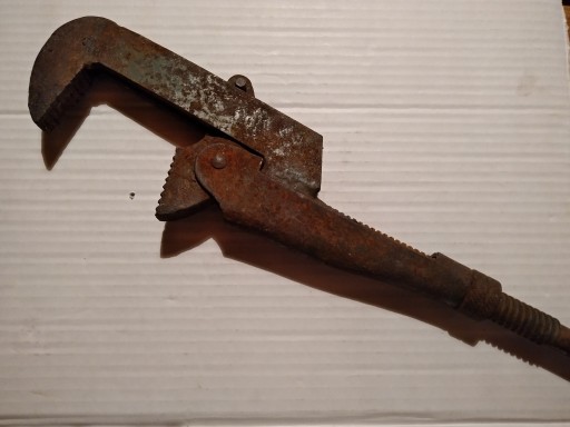 Do sprzedania oferuję stary nastawny klucz do rur.Stan - jak na zdjęciach.Nie uszkodzony.Całkowita długość klucza - 53cm .Maxymalna szerokość szczęk -8cm.