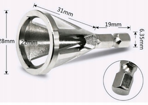 Przyrząd służy do gratowania / fazowania krawędzi zewnętrznych gwintów śrub i gwintowanych szpilek w celu ułatwienia wkręcania do gniazda lub nakręcania nakrętek.