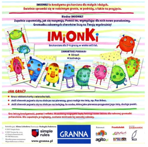 Gra ćwiczy kreatywność, pamięć i refleks. Uczestnicy rozgrywki będą tworzyć nowe imiona dla radosnej gromadki potworków. Kto zapamięta je najlepiej, zostanie mistrzem tej wesołej zabawy.