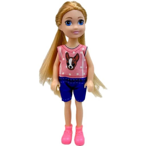 Lalka ubrana jest w wygodny strój z motywem pieska. Posiada także różowe buty, długie, blond włosy, rozjaśnione na słońcu podczas surfowania na swojej desce surfingowej!