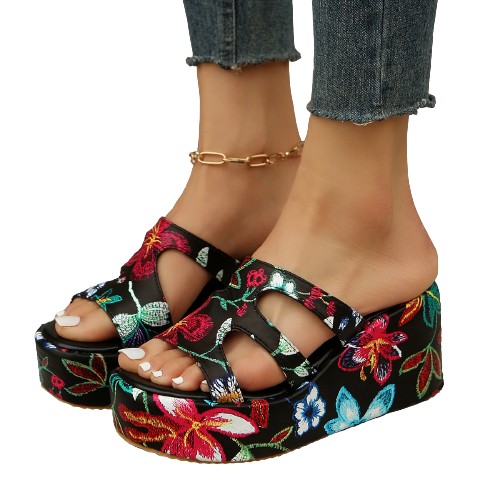 KLAPKI NA PLATFORMIE HAFT KWIATY DAMSKIE AS4625