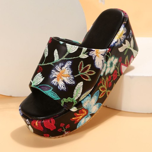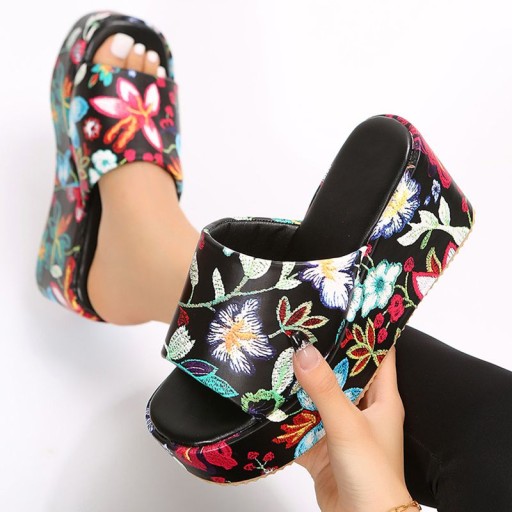 ЖЕНСКИЕ ТАПОЧКИ НА ПЛАТФОРМЕ С ВЫШИВКОЙ ЦВЕТОВ AS4626