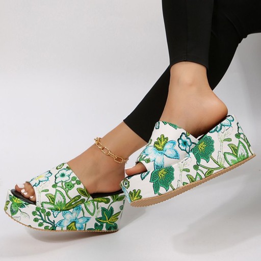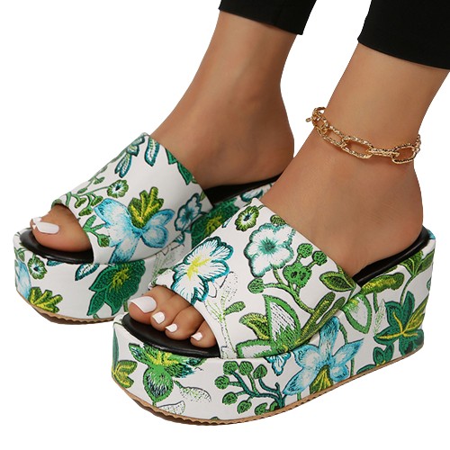 ЖЕНСКИЕ ТАПОЧКИ НА ПЛАТФОРМЕ С ВЫШИВКОЙ ЦВЕТОВ AS4626