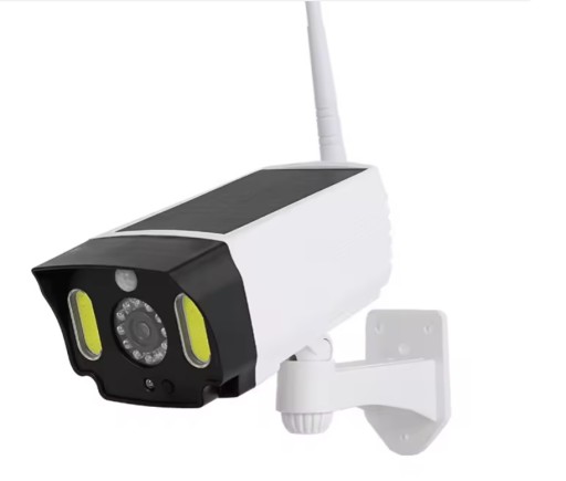 Wysokiej jakości atrapa kamery do monitoringu. Sprawia wrażenie istnienia realistycznej kamery zasilanej na baterie słoneczne.