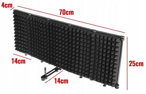 Osłona izolująca mikrofon zapewnia, że nagrania są czyste, kontrolowane i wolne od szumów, redukuje nieprzyjemną akustykę pomieszczenia, która wpływa na jakość dźwięku. Nasza kabina doskonale nadaje się do nagrań podcastów, filmów czy muzyki zarówno w warunkach domowych jak i w profesjonalnych studiach nagraniowych. Jej wymiary (70x25cm) pozwalają na komfortową pracę, nie zajmując dużo miejsca, a jednocześnie dając pewność wysokiej skuteczności.