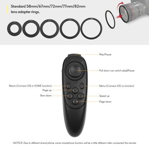 W tym 5-częściowy pierścień adaptera obiektywu (58mm/67mm/72mm/77mm/82mm), możesz używać różnych obiektywów aparatu DSLR do nagrywania filmów.