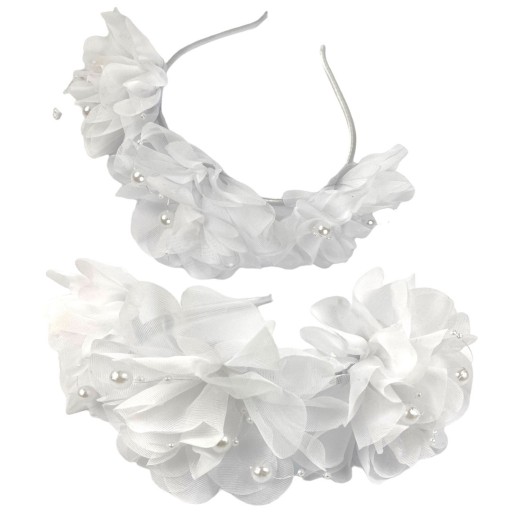 Biały elegancki wianek komunijny.