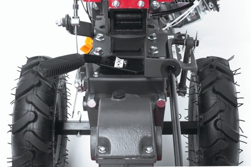 - Napęd na koła sprawia, że maszyna nie szarpie, doskonale amortyzując siły przenoszone z noży roboczych, zmniejsza wysiłek podczas pracy i umożliwia dokładne spulchnienie gleby już za pierwszym przejazdem roboczym.