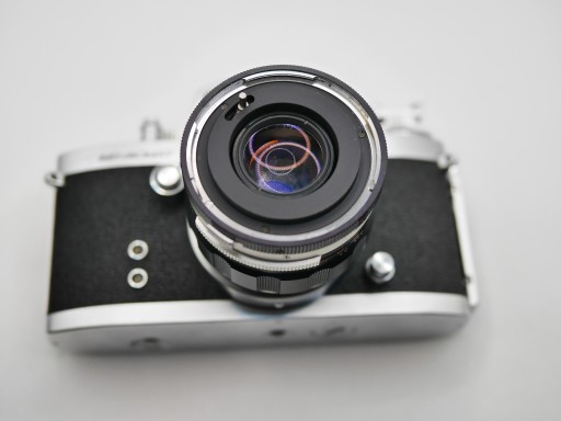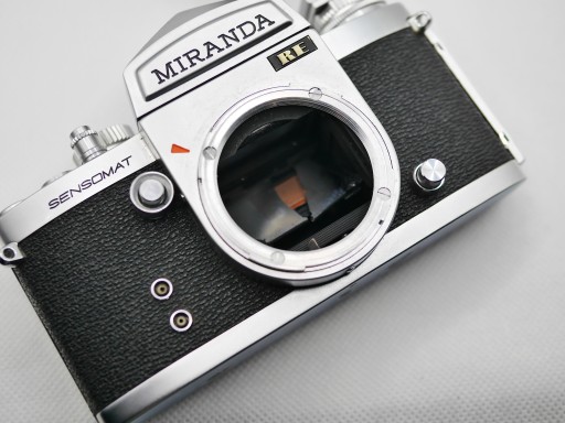 Lustrzanka analogowa Miranda Sensomat RE z obiektywem Auto Miranda 50 mm f 1,8. Do naprawy lub na części. Naciąga się, ale migawka nie działa, lustro pęknięte, dwa grzybki wewnątrz, frontowa soczewka bez rys. Przysłona sprawna