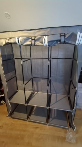 - Szafa jest niezwykle łatwa w montażu - wystarczy połączyć metalowe rurki z plastikowymi złączami i przykryć konstrukcję tkaniną. Gotowe w kilka minut bez potrzeby używania narzędzi.