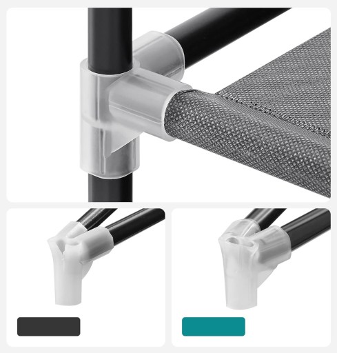 - Konstrukcja z rur stalowych o średnicy 16 mm i wzmocnionych plastikowych łączników zapewnia stabilność i bezpieczeństwo przechowywanych ubrań (maksymalne obciążenie statyczne na pręt: 15 kg).