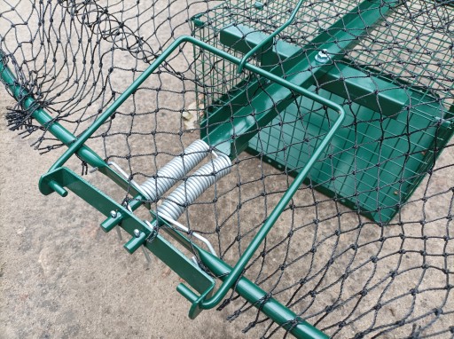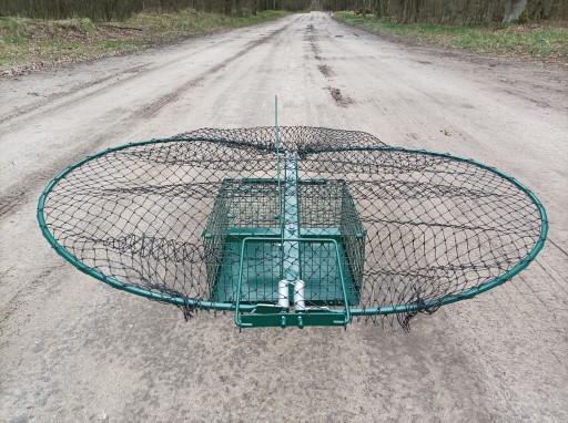 Produkt przeznaczony do skutecznego odłowu, np. jastrzębi, myszołowów czy innych ptaków drapieżnych. Żywołapka posiada klatkę do umieszczenia żywej przynęty. Produkt adresowany głównie dla hodowców gołębi, drobiu czy też innych ptaków ozdobnych. Oferowana pułapka pozwala w skuteczny i humanitarny sposób schwytać drapieżnika. Produkt składa się z dwóch elementów: chwytaka oraz klatki na żywą przynętę. Prosty sposób przygotowania żywołapki do użytku. Powyższe elementy wystarczy połączyć ze sobą za pomocą dwóch śrub mocujących. Możliwość demontażu komory. Nasz produkt jest niezwykle wytrzymały. Zapewnia to zastosowana siatka polietylenowa (40 x 40 mm), która zapobiega rozerwaniu czy przegryzieniu sieci przez pochwycone ptactwo. Wszystkie elementy metalowe zostały pokryte zieloną farbą. Dzięki temu produkt jest odporny na występowanie korozji. Zastosowany system to prosty, ale skuteczny mechanizm sprężynowy. Zamontowane tu 4 hartowane sprężyny powodują błyskawiczne oraz niezawodne działanie.