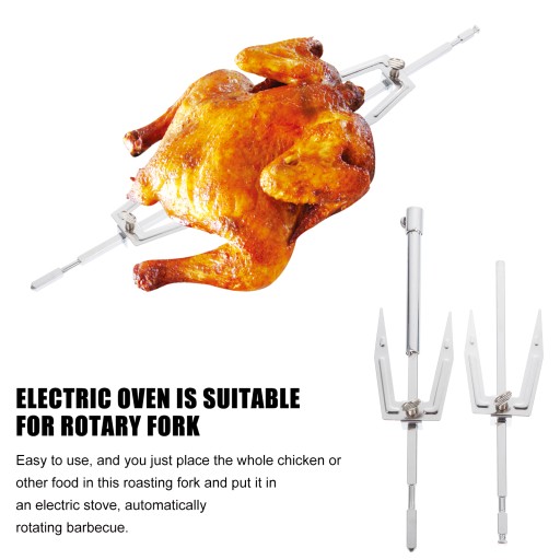 ✅Wykonany z wysokiej jakości stali nierdzewnej widelec jest nierdzewny, trwały i mocny, co zapewnia długotrwałe użytkowanie, odpowiedni dla miłośników grillowania i organizatorów domowych przyjęć przy grillu. Łatwy w użyciu, wystarczy umieścić całego kurczaka lub inne jedzenie w tym widelcu do pieczenia i włożyć go do kuchenki elektrycznej, automatycznie obracając grilla.