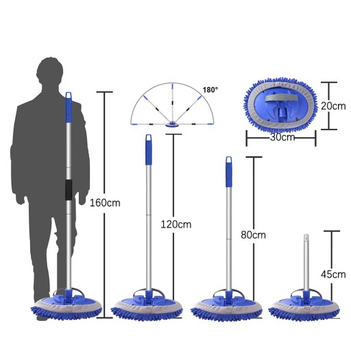 - Teleskopowa konstrukcja i regulowana w zakresie 180 stopni głowica mopa zapewniają większą elastyczność podczas mycia samochodu i umożliwiają łatwe wykonanie pełnego czyszczenia.
