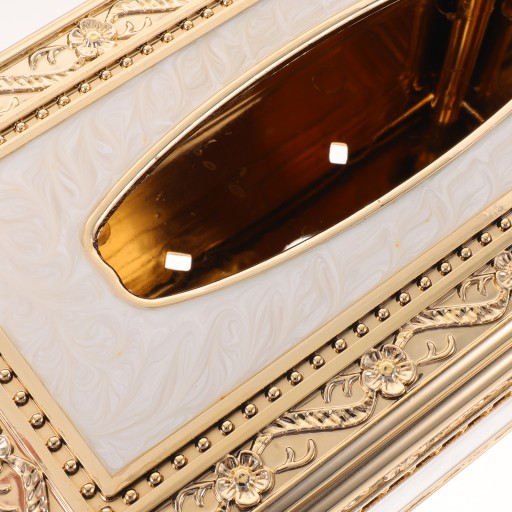 Niesamowite pudełko na chusteczki wykonane jest z wysokiej jakości materiału akrylowego, a wysokiej jakości pozłacane wykończenie sprawia, że pudełko na chusteczki jest bardzo wspaniałe i błyszczące.