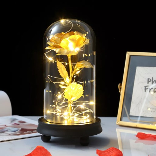 КРАСИВАЯ ЗОЛОТАЯ ИСКУССТВЕННАЯ ВЕЧНАЯ РОЗА В ДИОДНОМ СТЕКЛЕ ПАСХАЛЬНЫЙ ПОДАРОК