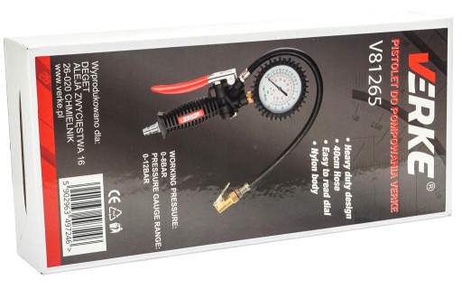 Solidny i niezawodny pistolet z manometrem do pompowania kół. Zakończony standardowym wtykiem pasującym do szybkozłączki. Zegar zabezpieczony gumowaną osłoną, chroniącą go przed potencjalnym uszkodzeniem. W zasięgu kciuka mamy do dyspozycji zawór który umożliwia regulację powietrza w kole. Pistolet wykonany z wysokiej jakości materiałów. Idealny dla warsztatów samochodowych i zakładów wulkanizacyjnych.
