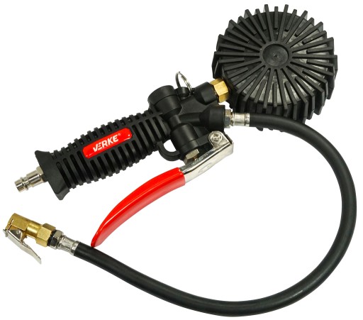 Służy do napełniania sprężonym powietrzem dętek i opon wyposażonych w zawór. Dzięki adapterom (nie dołączonym do zestawu), możliwe jest także pompowanie pontonów, materaców, itp. Pistolet wyposażony jest w manometr, który umożliwia kontrolę ciśnienia powietrza w pompowanym produkcie oraz aluminiowy korpus z antypoślizgowym uchwytem.