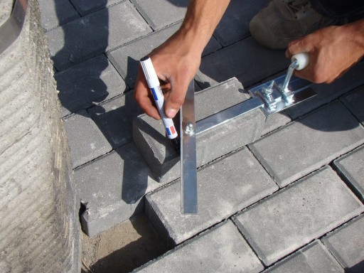 Przymiar umożliwia idealne dopasowanie ciętej kostki brukowej, do miejsca w którym ma być ułożona. (PRZ)