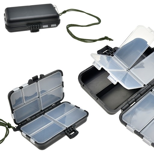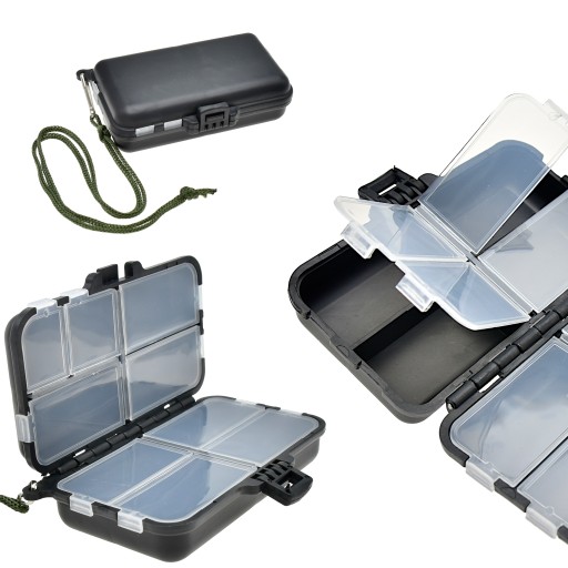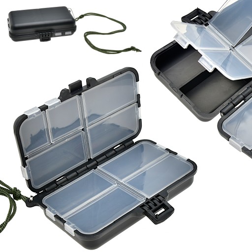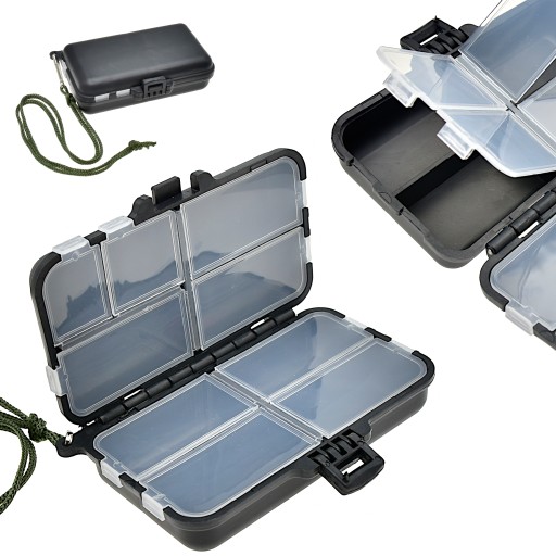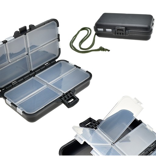 Bardzo praktyczne - pudełko/skrzynka - pozwoli nam na rozmieszczenie wędkarskiego ekwipunku według indywidualnych potrzeb. Idealne na haczyki krętliki i inne niezbędne akcesoria wędkarskie. Otwór w korpusie umożliwia zamocowanie uchwytu (w komplecie sznureczek z agrafką)