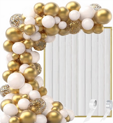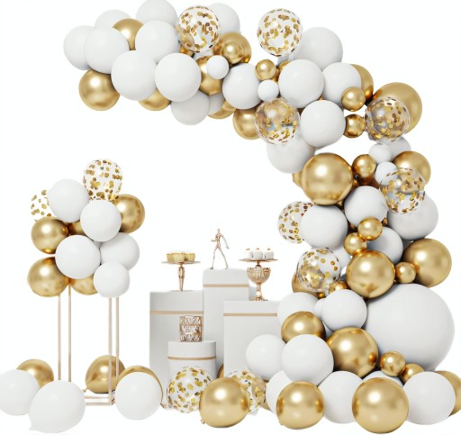 ZESTAW BALONÓW GIRLANDA BALONOWA BALONY ZŁOTE BIAŁE Z KONFETTI 122EL.
