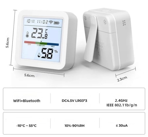 - Zakres pomiaru wilgotności: 10% RH ~ 90% RH