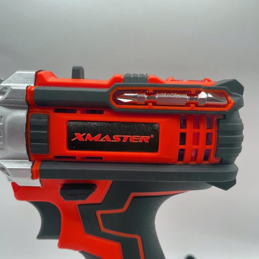 Wiertarko-wkrętarka XMaster jest podręczna. W zestawie znajdziesz walizkę z tworzywa sztucznego, która ma dedykowane miejsce dla każdego elementu zestawu. Bezproblemowo wsadzisz ją do auta, piwnicy, altany, czy składziku.