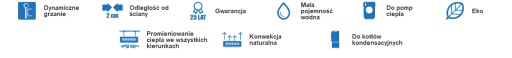 - niewielka masa własna i mała pojemność wodna to wysoka dynamika grzania, grzejniki szybko osiągają pełną moc znamionową dla danej temperatury zasilania