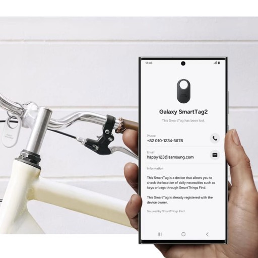 Ułatw innym zwrot właścicielowi. Jeśli włączysz tryb Zgubione urządzenie, funkcja komunikacji bliskiego zasięgu (NFC) w Galaxy SmartTag2 wyświetli Twoje dane kontaktowe i wiadomość na ekranie smartfona znalazcy, niezależnie od systemu operacyjnego.