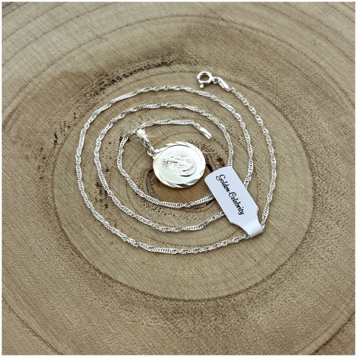 СЕРЕБРЯНАЯ ЦЕПЬ СИНГАПУР + МЕДАЛЬ 925 БОЖЬЕЙ МАТЕРИ ОСТР БРАТЕ + ГРАВИРОВКА