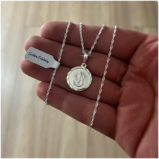 ➡️ SREBRNY ŁAŃCUSZEK SINGAPUR + MEDALIK 925 MATKA BOSKA OSTROBRAMSKA + GRAWER