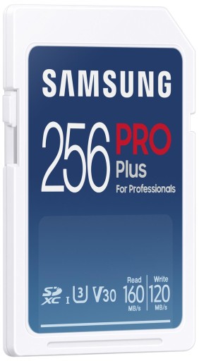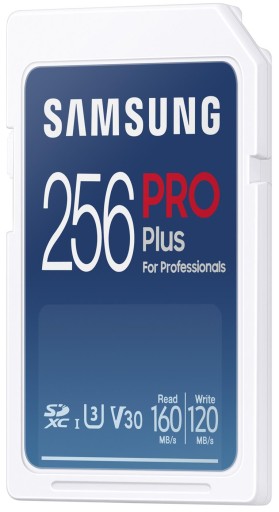 Producent Samsung Model PRO Plus 2021 Typ karty SDXC Pojemność 256 GB Prędkość odczytu 160 MB/s Prędkość zapisu 120 MB/s Klasa prędkości Class 10, UHS-I/U3