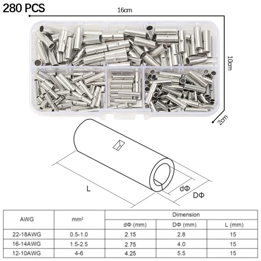 280-częściowy Zestaw Nieizolowanych Końcówek Przewodów Elektrycznych Do Zaciskania Złączy