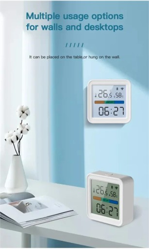 - Czujnik temperatury i wilgotności : Mierzy zarówno poziom temperatury jak i wilgotności w domu dla optymalnego komfortu