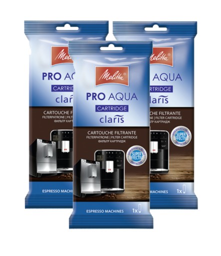 Wkład filtra wody Pro Aqua Claris przeznaczony jest dla wszystkich ekspresów ciśnieniowych marki Melitta.