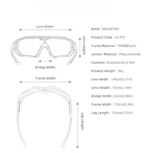 Gratis: do każdej zakupionej sztuki okularów dołączone jest oryginalne etui marki KINGSEVEN, ściereczka do czyszczenia, woreczek materiałowy, tester polaryzacji