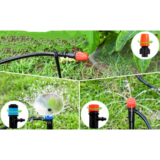 Zestaw do nawadniania kroplowego MIXC zawiera 3 rodzaje opryskiwaczy, emiter kroplowy może regulować różne tryby nawadniania, takie jak mikrokropelki, spraye, podlewanie itp. Każda dysza natryskowa może być regulowana indywidualnie w zależności od jej ustawienia i potrzeb.