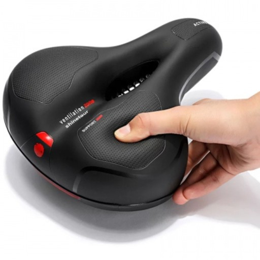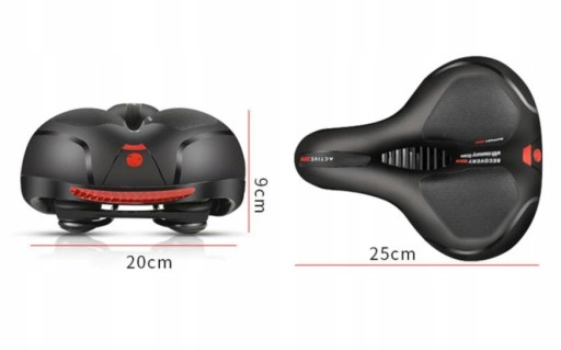 Nowoczesne siodełko rowerowe jest miękkie i wygodne. Dodatkowo bardzo dobrze tłumi drgania, dzięki czemu jazda na rowerze sprawi Ci samą przyjemność. Siodełko jest wyposażone w 2 sprężyny oraz specjalną piankę pochłaniającą wstrząsy w trakcie jazdy. Dodatkowo z tyłu siodełka został doczepiony odblask.