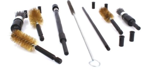 - szczotki z drutu stalowego powlekane mosiądzem 18mm, 22mm i 25mm (do czyszczenia osadów węglowych z wewnętrznych ścian bocznych gniazda)