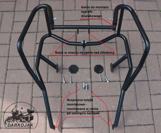 Rury biegnące wzdłuż motocykla na narożniku tworzą kształt sanek, co w razie ślizgu zapobiegnie zahaczeniu i wyrwaniu gmola o krawężnik czy inną nierówność na asfalcie.