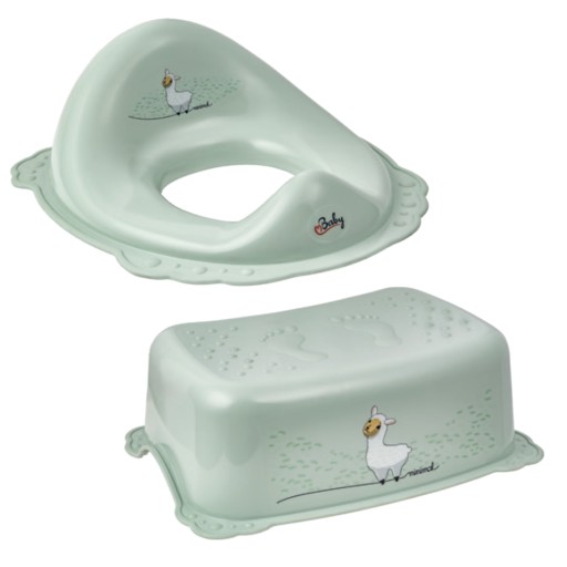 Zestaw antypoślizgowy! Nakładka na sedes + Podnóżek - KOLOR minimal Jasnozielona Lama.
